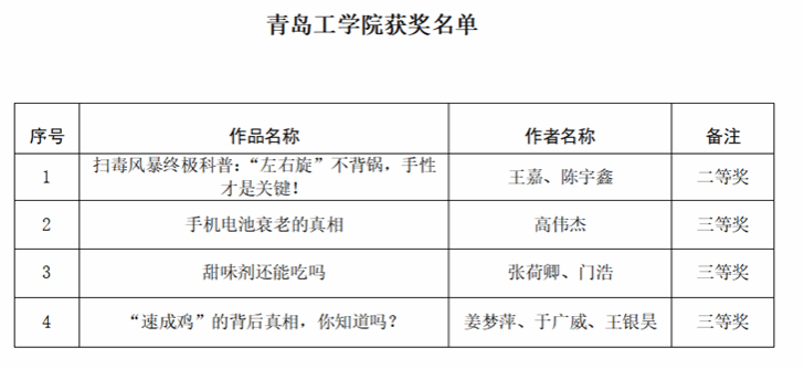 学校坚持“以赛促学、以赛促创”育人理念。近三年,学校学子在科普类竞赛中屡创佳绩,获得省部级二等奖1项、三等奖11项,市厅级二等奖1项、三等奖3项。这些成果不仅获得上级主管部门的充分肯定,更成为学校培育学生科普创作能力、提升学生科学传播素养的有力佐证。下一步,开云电竞网站将持续深化科普教育与科技创新融合,引导更多青年学子投身科学传播事业,为推动青岛地区科普信息化建设、培育创新型人才贡献“青工力量”。