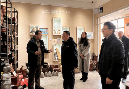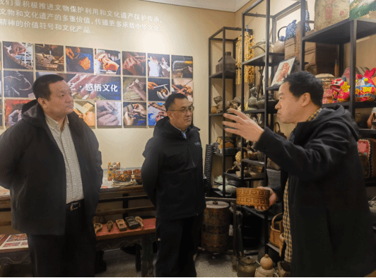 考察过程中,侍锦教授详细介绍了馆内丰富的非遗展品,涵盖传统印染、刺绣、民间美术等领域。这些展品承载着深厚的文化底蕴,展现了劳动人民的智慧和创造力,让参观团队深切感受到非遗文化的独特魅力。