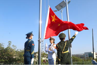 伴随着庄严的国歌声,五星红旗冉冉升起,军训结营仪式正式拉开帷幕。