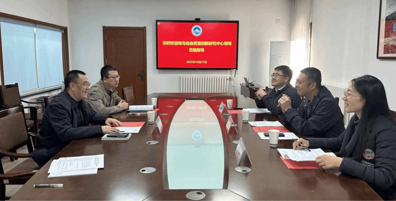 2025年10月21日下午,青岛自由贸易创新研究中心人力资源与社会保障处就业促进与失业服务科负责人刘洪磊一行来校调研,副校长李占军、创新创业教育中心人员参加了座谈会。