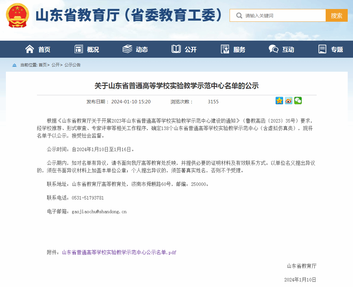 近日,山东省教育厅公示了山东省普通高等学校实验教学示范中心名单。我校申报的信息工程实验教学中心获批。