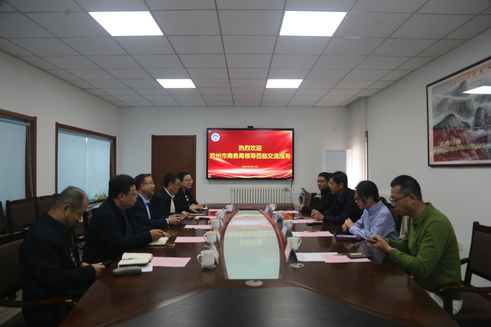4月15日上午,胶州市商务局党组书记、局长王书满一行来我校调研。校长刘连新,副校长李占军,党委委员、产教融合办公室主任肖天林,外语学院院长于慧丽,经济管理学院院长宋辉参加了座谈交流。