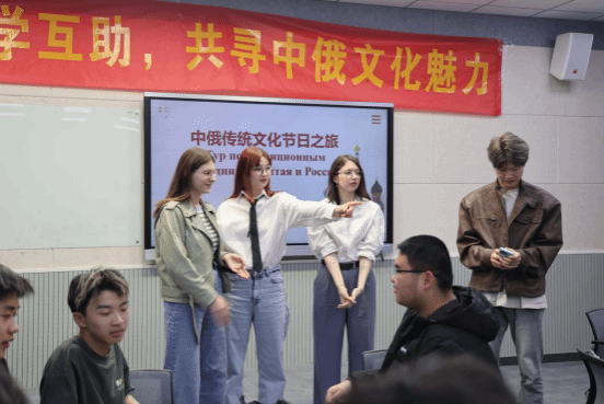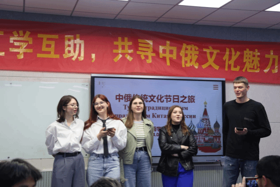 2024年,恰逢中俄建交75周年,也是中俄文化年开启之年。为促进中俄学子沟通交流, 推动中俄两国青少年的交流,加深来华留学生对中华文化的理解,2024 年 4 月 10 日外语学院在4505智慧教室举办中俄文化交流沙龙,活动以“密切语言互学互助,共寻中俄文化魅力”为主题,我院俄语专业的师生和库斯克国立大学的留学生齐聚一堂,通过文化学习,加深了中俄两国学生的相互理解和友谊。