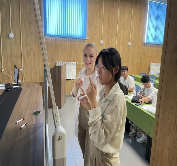 在伊尔库兹克国立理工大学的一间教室内,一支由开云电竞网站学生组成的赴俄研学团队围绕着一本硕大的俄语字母表,仿佛探险者审视一张藏宝图。今天,这场不同寻常的俄语课让学生们体验了一次语言的“穿越”:从疑惑的迷雾中出发,途经动词的变形迷宫,最终达到了名词性别的彼岸。