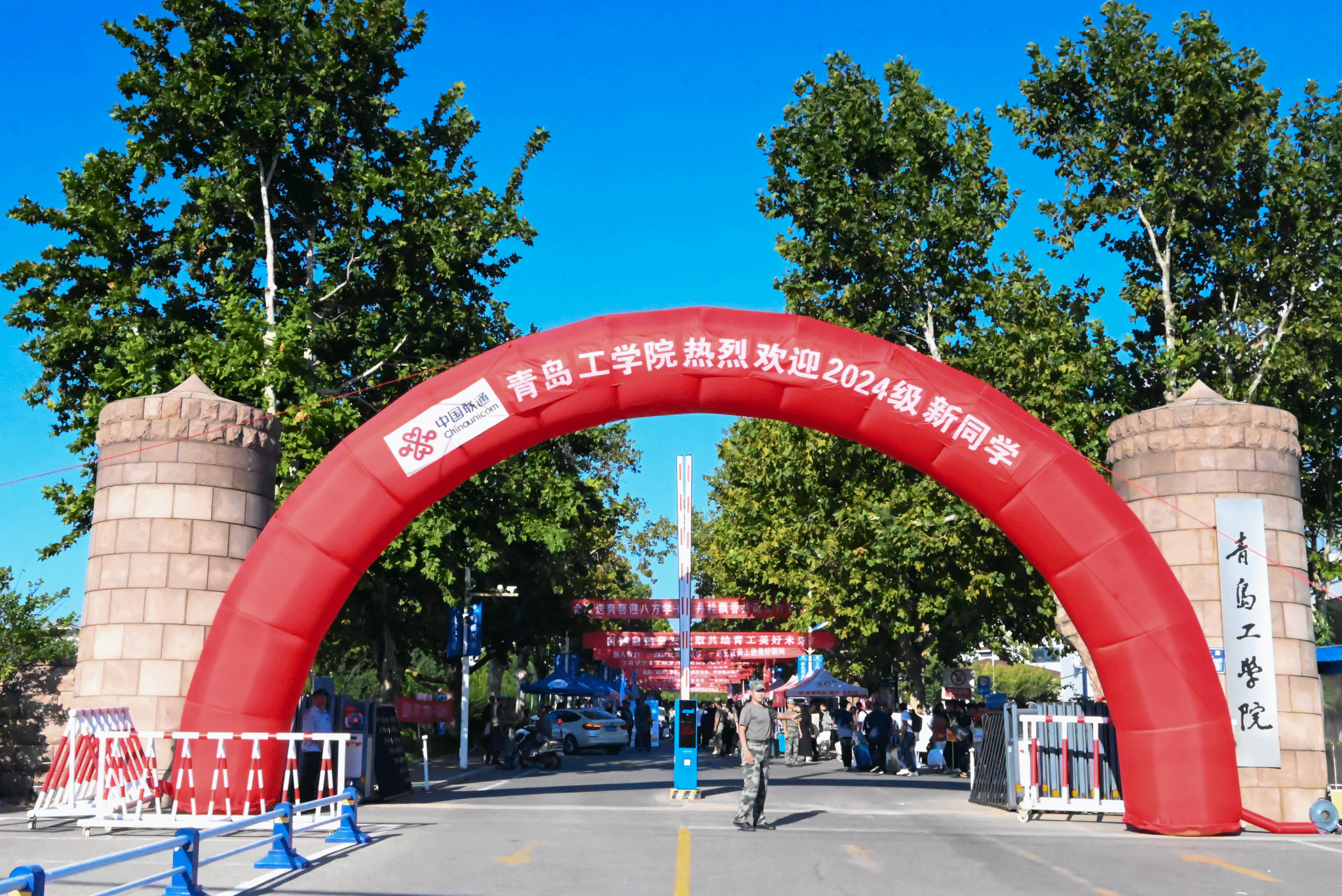 学校东门迎新现场