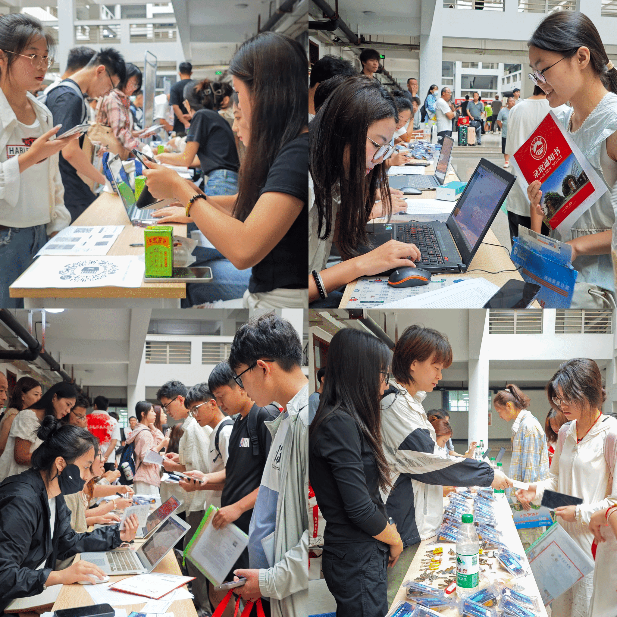 为确保每位新生顺利报到,学校迎新工作组集中办公,为新同学报到提供一站式服务。报到注册、绿色通道、资料收取、钥匙发放等与入学报到有关的流程,在老师和学长学姐的指导下,有序进行。报到现场人潮涌动,热闹非凡;各个环节有条不紊,高效畅通。