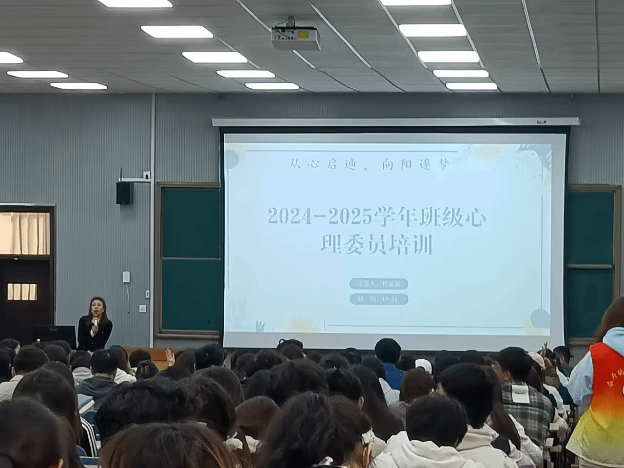 为加强班级心理委员队伍建设,提升心理委员开展朋辈心理服务的责任意识和专业能力,10月31日中午,大学生心理咨询中心在三号教学楼3121教室举办“从心启迪,向阳逐梦”为主题的班级心理委员培训会。培训由大学生心理咨询中心程亚楠老师主讲,175名班级心理委员参与此次培训。