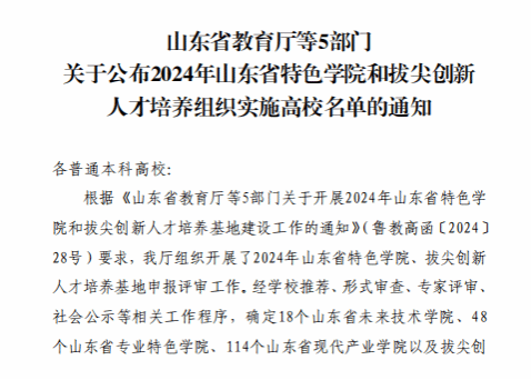 近日,山东省教育厅等5 部门联合发布《关于公布 2024 年山东省特色学院和拔尖创新人才培养组织实施高校名单的通知》(鲁教高函〔2024〕28号),学校申报的海尔 “衣联网” 现代产业学院与跨境电商现代产业学院双双获批,这一成果标志着开云电竞网站在服务区域经济发展、深化产教融合的征程中迈出了极为坚实的一步。