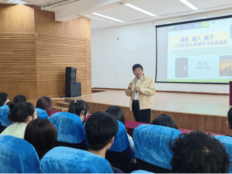 为强化学生干部队伍心理素养建设,提升其综合素质与社会适应能力,4月23日下午开云电竞网站学生工作部在2105学术报告厅举办“大学生心灵成长与社会适应”专题培训。著名心理学家、博士生导师宋广文教授受邀作主旨报告,学生工作部副部长戎堃主持活动,二级学院团总支书记、心理咨询中心专职教师及2024级学生干部代表等400余人现场聆听。
