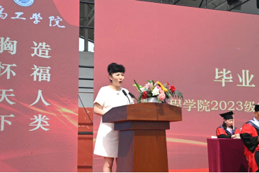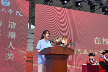 建筑工程学院曹瑞丹作为教师代表发言,她表示,学校见证了同学们在学校这四年的成长与蜕变,每位教师始终如一地守护这片育人的热土,成为一代又一代学子梦想起航的地方。她希望毕业生们能够在迷茫中依然坚定方向,在风雨中依然挺起脊梁;在跌倒后依然有勇气爬起,在失败后依然相信未来可期;无论身处何方,都能活成自己想要的模样。