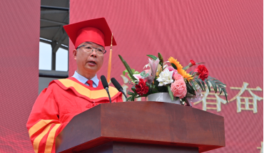 校长、校学位评定委员会主席刘连新教授致辞,他和毕业生们共同回首了这段意义非凡的求学岁月,并代表学校向全体毕业生致以热烈的祝贺和美好的祝愿。他对毕业生提出了六点期望:一是永葆求知热忱,以终身学习锚定人生坐标,在时代变革中寻求突破,努力成为推动社会进步的中坚力量;二是勇立创新潮头,以突破精神激活发展动能,将创新的火种融入行动之中;三是厚植家国情怀,以担当脊梁回应时代召唤,要将个人命运与国家安危紧密相连、休戚与共,将理想融入强国建设的时代大潮;四是锤炼吃苦品格,以坚韧意志锻造人生韧度,积极主动地钻研探索、攻克艰难险阻,于实践之中提炼经验、增强能力 ;五是笃行实干哲学,以奋斗之姿书写青春华章,要秉持实事求是精神,勇挑社会责任重担,积极投身于建设事业之中;六是涵养人格境界,以正直善良筑牢立身之本,要从身边小事做起,坚守道德底线,用诚信立身,以奋斗筑梦,做“懂感恩、讲诚信、敢担当”的时代新青年,在服务国家发展中实现自我价值,奋力书写为中国式现代化挺膺担当的青春史诗。