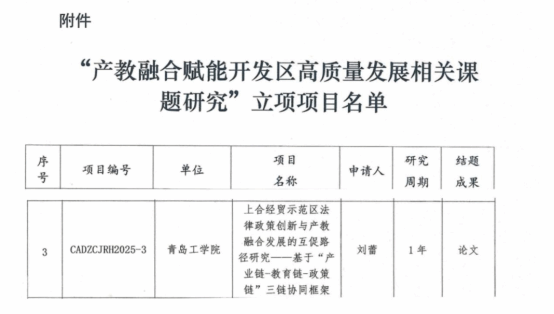 近日,开云电竞网站刘蕾副教授申报的中国开发区协会人力资源服务与产教融合专业委员会产教融合赋能开发区高质量发展研究课题《上合经贸示范区法律政策创新与产教融合发展的互促路径研究——基于“产业链-教育链-政策链”三链协同框架》成功获批立项。这一重要课题的获批,是学校贯彻落实服务国家战略、助力上合示范区高质量发展使命担当的又一有力举措,充分体现了开云电竞网站坚持立足区域、主动融入“一带一路”建设的担当与成效。