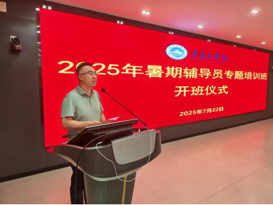 辅导员代表、马克思主义学院张书玮发言表示,全体辅导员将以饱满热情投入培训,勤学善思、务求实效,把所学转化为服务学生成长的能力,为学校育人事业贡献力量。随后,学生工作部部长王涛详细解读了《2025年暑期辅导员专题培训培训方案》,强调本次培训以“政治引领、专业赋能、实践淬炼、情感凝聚”四位一体体系为核心,旨在锻造“政治强、业务精、纪律严、作风正”的高水平队伍。