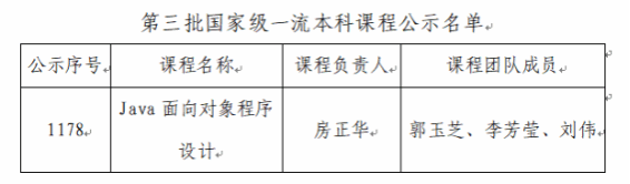 近日,在教育部高等教育司公示的第三批认定结果中,学校人工智能与大数据学院房正华教授领衔建设的《Java面向对象程序设计》课程获批国家级一流本科课程。