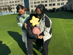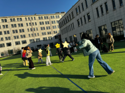 “气球宝宝要乖乖跟着搭档回家哦!”10分钟的气球接力赛环节趣味十足。学生们以小组动力理论为指引,将孩子们分为2人一组协同参与。针对部分儿童肢体不协调的情况,学生们采用“一对一辅助+鼓励话术”,一句“你帮同伴稳住气球的样子超棒!”既强化了彼此的协作意识,更以正向反馈帮孩子们培育抗挫力。现场气球纷飞,孩子们从最初的羞涩避让,渐渐变得主动配合、默契互动,同伴支持的温暖在一次次接力中悄然传递,定格下珍贵的成长瞬间。