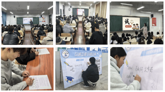 同时,辅导员们贴心分享高效复习方法、时间规划技巧与应试心态调适策略,耐心疏导学生备考焦虑情绪,鼓励学子以从容心态迎战期末、以扎实学识书写答卷。现场,全体学生郑重签署《大学生诚信考试承诺书》,一笔一画承载着对学术道德的坚守,一言一行诠释着对诚信品格的践行,让诚信从外在制度要求,真正转化为内化于心、外化于行的自觉行动。