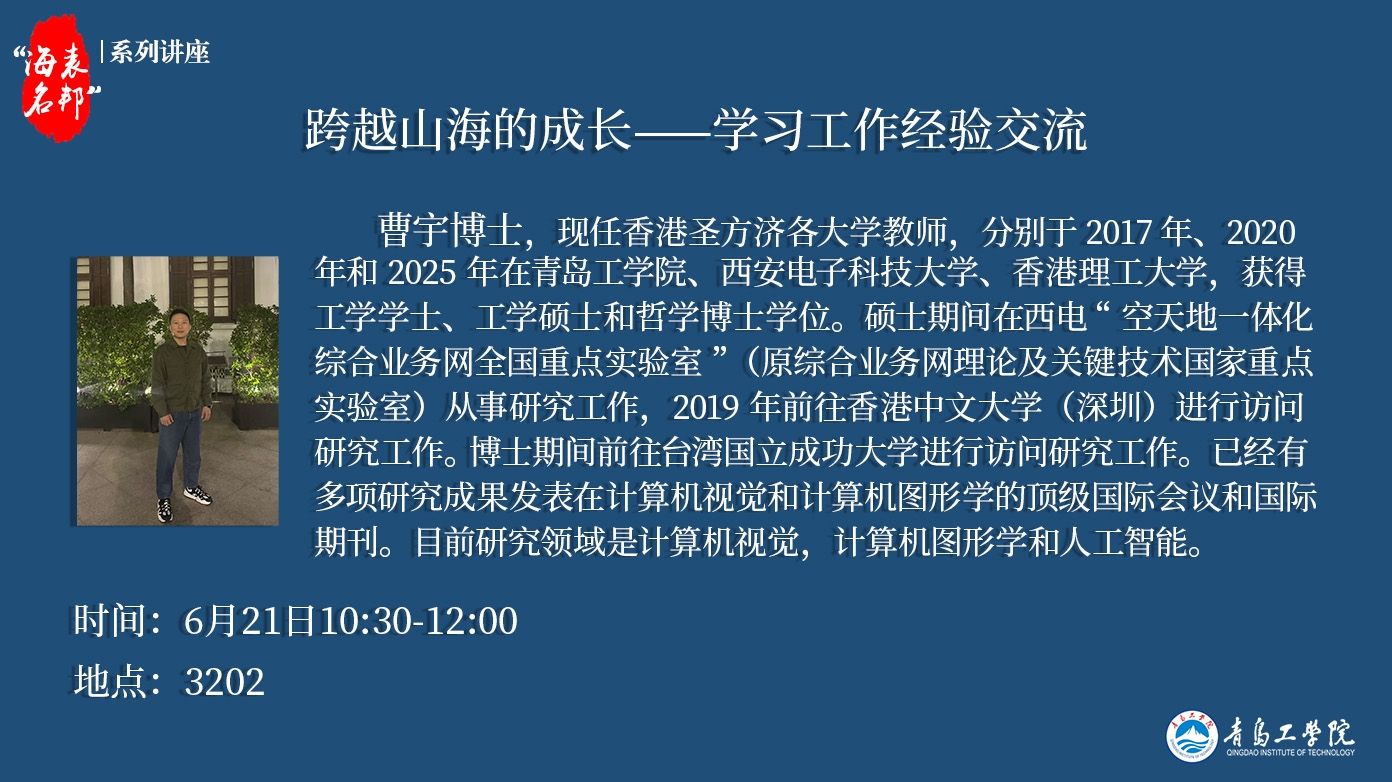“海表名邦”系列讲座:曹宇《跨越山海的成长——学习工作经验交流》