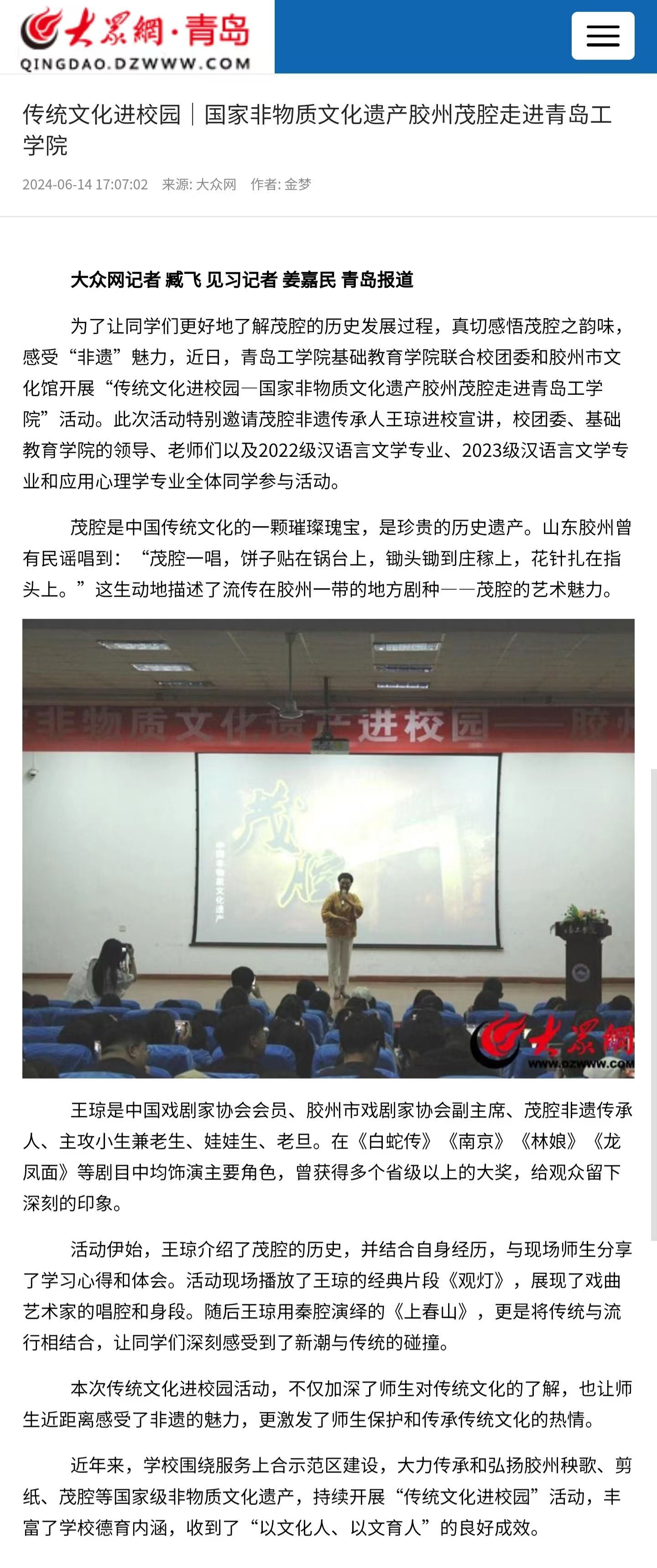 《大众网》传统文化进校园|国家非物质文化遗产胶州茂腔走进开云电竞网站