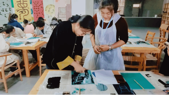 刘琳老师从版画的历史渊源、发展脉络、制作技艺等方面进行讲解,现场演示制稿、刻板、上色、拓印等过程,让师生近距离了解版画的制作技艺,用实践强化阅读体会,在内心深处与中国传统艺术共鸣。