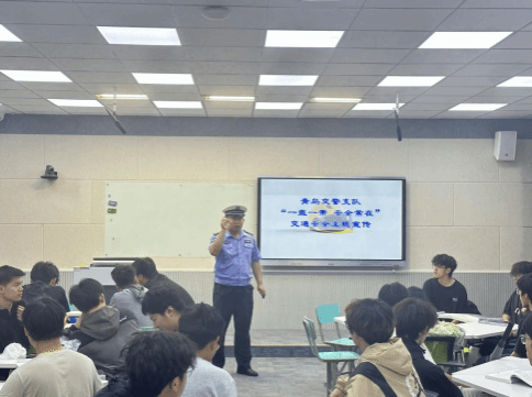 讲座中,胶州市交警大队王警官对各类交通法规进行了详细的解读,阐释了基本的信号灯规则、车道行驶规定、道路标线含义等,并针对实际生活中发生的交通案例阐明骑电动车过程中应当注意的问题,如应当正确佩戴头盔、注意大车转弯中产生的内轮差、防止“开门杀”等。王警官还着重强调了良好出行习惯对预防事故的重要性,详细介绍了步行、骑行、驾车等不同出行方式下的安全习惯及特殊天气下的驾驶技巧。讲座期间,对于同学们提出的与日常交通安全紧密相关的问题,王警官给予了专业、详细的解答,使同学对交通安全知识有了更深入地理解。