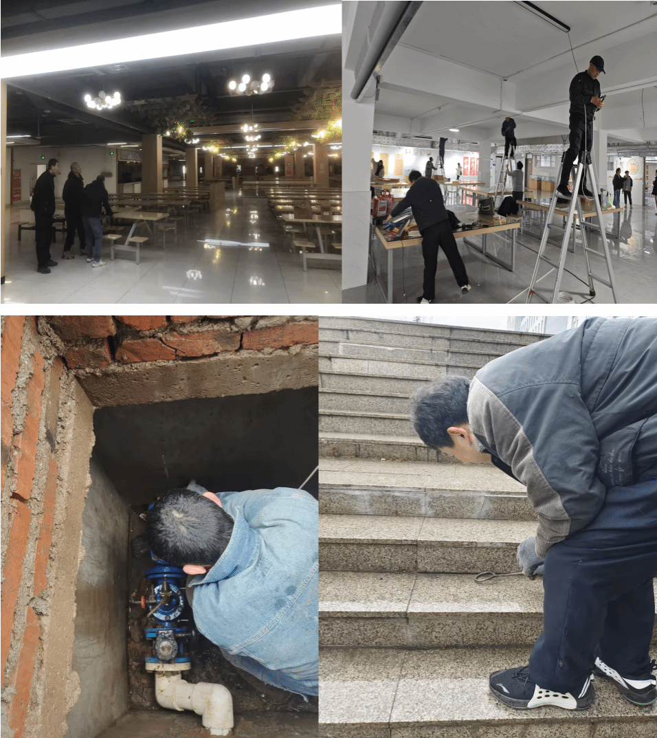 维修人员实行拉网式排查检修,假期进行集中维修,对学生公寓、教学楼、实验楼等区域灯具、门锁、开关、水龙头、大理石台阶等设施设备逐项检查维护,及时修复损坏部件、更换老化配件,重点解决照明不亮、开关失灵、门锁损坏、水龙头漏水等问题,本年度寒假共计更换图书馆、教学楼、学生公寓灯管200余根,生活中心用灯泡250余个,灯箱灯条30余根,电子开关30个,门锁100余套,卫生间水龙头60余个;提前恢复校园用水供应,维修人员划分区域,逐一排查供水管道及阀门,及时处理跑冒滴漏现象,保证用水供应稳定,教学与生活设施正常运行。