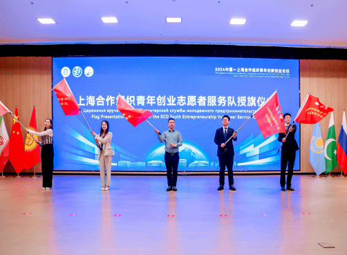 与会嘉宾为上合组织青年创业志愿者服务队代表授旗。我校创业志愿服务队获授“上合组织青年创业志愿者服务队”。服务队由创业导师、来华留学生、青年企业家组成,肩负着为创业者提供创业计划辅导、职业生涯规划、创业实践、创业孵化的职能。 会上,中国—上海合作组织经贸学院创新创业学院和中国-东盟创新创业学院发布中俄英三语《“一带一路”国际青年创新创业青岛共识》,多方将秉持开放、包容、合作、共赢理念,共克技术难题,实现资源共享、优势互补,推动新质生产力发展。