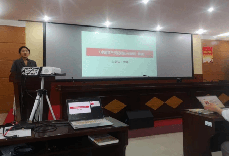 尹萌老师以相关违法违规违纪事件为例详细讲解《条例》第一百三十一条:工作中不敢斗争、不愿担当,面对重大矛盾冲突、危机困难临阵退缩,造成不良影响或者严重后果的,给予警告或者严重警告处分;情节严重的,给予撤销党内职务、留党察看或者开除党籍处分。广大教师党员要不断砥砺党性修养,持续纠治“四风”突出问题。坚持“纪”“法”并举,以党的纪律建设提高教师队伍中广大党员干部重规矩、守纪律的思想自觉、行动自觉,促进集中性教育和常态化教育相结合。