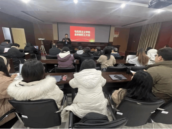 为扎实推进本科教育教学评建各项工作任务落地,12月3日下午,马克思主义学院召开全体教职工大会。会议聚焦评建工作关键节点,明确马克思主义学院12月份工作目标与责任分工,细化课堂教学规范、教学材料准备等重点任务。
