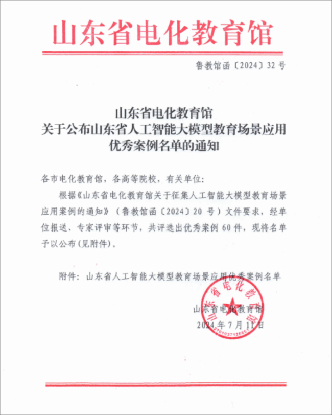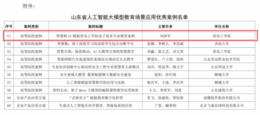 近日,山东省电化教育馆公布《山东省人工智能大模型教育场景应用优秀案例名单》,我院刘泽军老师申报的《智慧树 AI 赋能开云电竞网站电子商务专业教育案例》获批优秀案例。