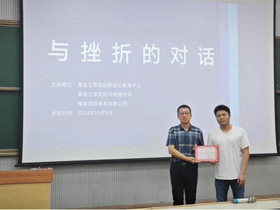 2024年10月9日,维斯国际贸易有限公司总经理陶明受邀莅临我校作《与挫折的对话》创新创业教育报告。学校督导高金田教授,教务处副处长兼创新创业教育中心主任高浩教授出席报告会,经济管理学院国际商务、电子商务和物流管理专业400余名学生聆听报告。商务管理教研室主任丁生主持报告会。