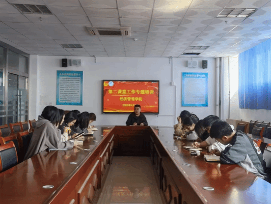 为深入贯彻落实学校“第二课堂成绩单”制度,进一步推动学生综合素质培养体系建设,4月1日,经济管理学院于图书馆TG5006会议室组织召开第二课堂工作专题培训会议。学院2023级、2024级全体辅导员参加会议,团总支书记狄继承作专题培训,系统解读政策文件,部署新学期第二课堂重点工作。