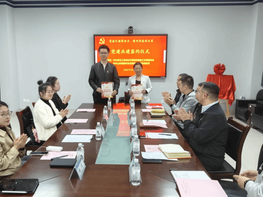 教工党支部书记李光琴介绍了党支部的建设和发展情况,并进一步阐述了校企两支部共建的意义以及未来合作方向;王栋在讲话中介绍了党支部的党建活动特色以及与经济管理学院校企合作开展的情况。李光琴与王栋分别代表校企双方党支部进行签约,并举行了揭牌仪式。