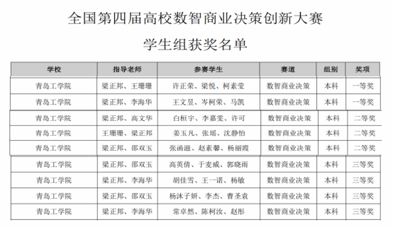 图2 数智化商业决策创新大赛区域赛获奖名单