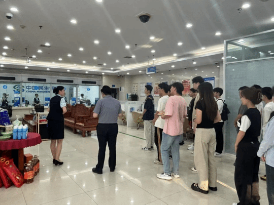 2025年6月18日下午,经济管理学院2023级金融工程1班学生走进中国建设银行胶州分行和中国民生银行青岛胶州支行开展参观研学活动。本次活动由经济管理学院金融社团联合两家银行共同策划,旨在帮助金融工程专业学子深入探究现代金融机构的运营机制与创新服务模式。两家银行提供的实践平台,让同学们得以近距离接触银行业务全流程、金融科技前沿应用及客户服务核心理念。