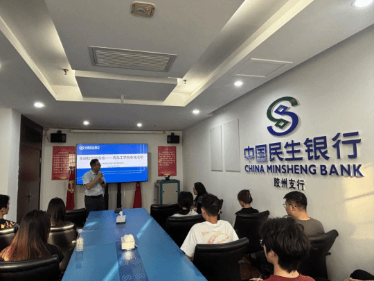 在中国建设银行胶州分行营业大厅,对公业务部经理李宝涛为同学们系统介绍了建行的发展脉络、业务架构及其在地方经济建设中的关键作用。同学们由此全面了解到建行在服务形态上的革新——从个人储蓄、对公金融服务,到依托数字化平台实现智能化操作的转型历程。