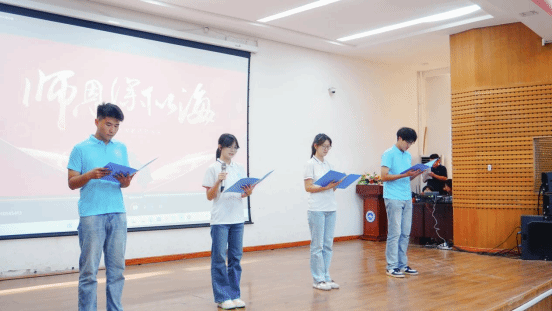 莘莘学子心,浓浓尊师情。学生们准备了精彩的节目向老师表达敬意:活力四射的啦啦操表演展现青春活力,深情婉转的歌曲《追光者》诉说追随之心,慷慨激昂的朗诵《赞歌》礼赞师恩伟大。每个节目都饱含深情,将会场气氛渲染得温馨而感人。