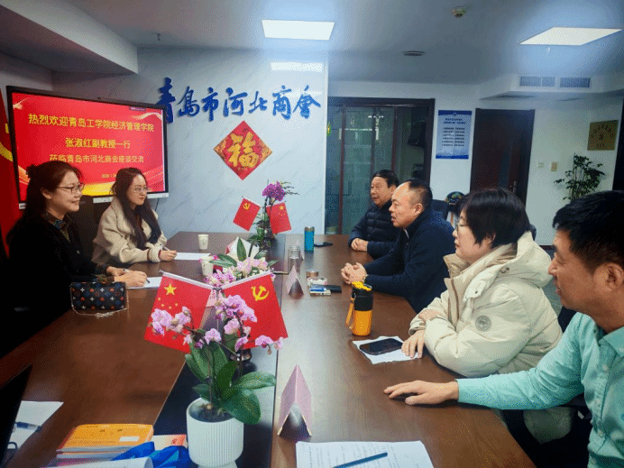 为深化校企协同育人机制,精准对接行业用人需求,持续擦亮市场营销专业“营销+数智化+上合”的培养特色,优化人才培养方案,拓宽毕业生高质量就业渠道,1月26日,经济管理学院市场营销专业负责人张淑红副教授、专业教师魏晨老师一行前往青岛市河北商会开展访企拓岗及人才培养方案修订调研活动。青岛市河北商会会长乔晓光、秘书长陈永红、优秀会员企业代表青岛赛浦瑞斯实业有限公司总经理商爱梅及核心会员企业代表给予了热情接待。