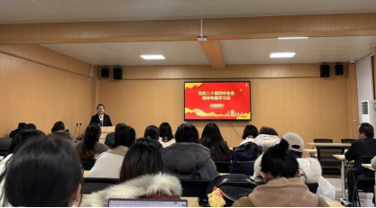 为深入学习贯彻党的二十届四中全会精神,扎实推进本科教育教学审核评估工作,统筹部署学期末及下学期重点任务,2025年12月15日下午16:00,商务外语学院在1313教室召开全院教师专题工作会议。会议由于慧丽院长主持,全院教职工参会。