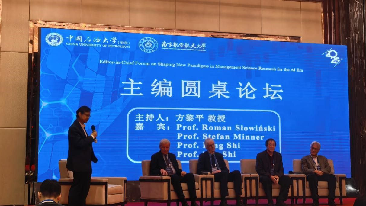 本次论坛聚焦生成式人工智能、大语言模型等新兴技术引发的管理科学领域深度变革,精准搭建了跨校跨域的高端学术对话平台。论坛特别邀请到《European Journal of Operational Research》主编 Roman Słowiński 教授、《系统工程理论与实践》主编杨晓光研究员、《Frontiers of Engineering Management》执行副主编王红卫教授等众多国内外知名专家学者,通过主题报告、主编圆桌论坛、前沿成果研讨等多元化形式,深入剖析 AI 驱动下管理科学研究的新理念、新方法,全面探讨学科发展面临的新机遇与新挑战,为推动管理科学与人工智能的深度融合凝聚了学术共识。