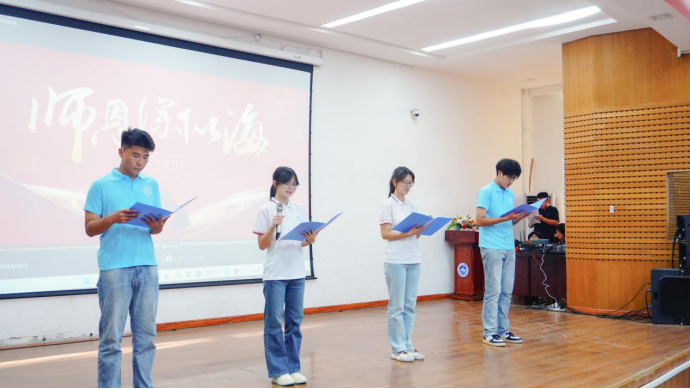 莘莘学子心,浓浓尊师情。学生们准备了精彩的节目向老师表达敬意:活力四射的啦啦操表演展现青春活力,深情婉转的歌曲《追光者》诉说追随之心,慷慨激昂的朗诵《赞歌》礼赞师恩伟大。每个节目都饱含深情,将会场气氛渲染得温馨而感人。