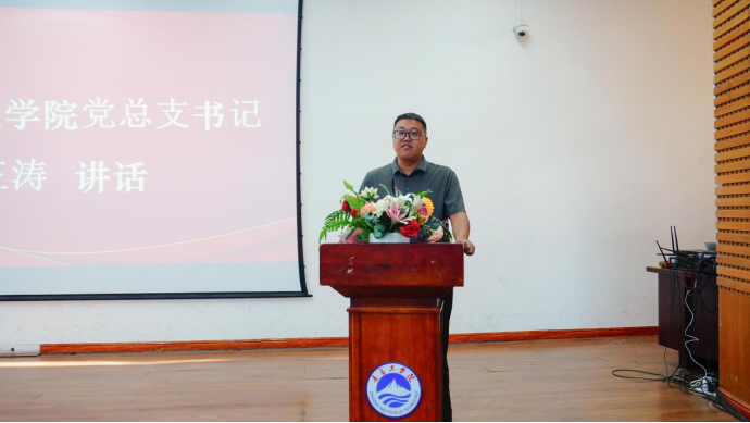 王涛发表讲话。他代表党总支向全体教师致以节日的问候,向受表彰教师表示热烈祝贺。围绕迎评工作,他进行了深入动员,强调了评估工作的重要性与紧迫性,要求全体教职工提高站位、凝聚共识、落实责任,以最佳状态迎接评估,推动学院发展再上新台阶。