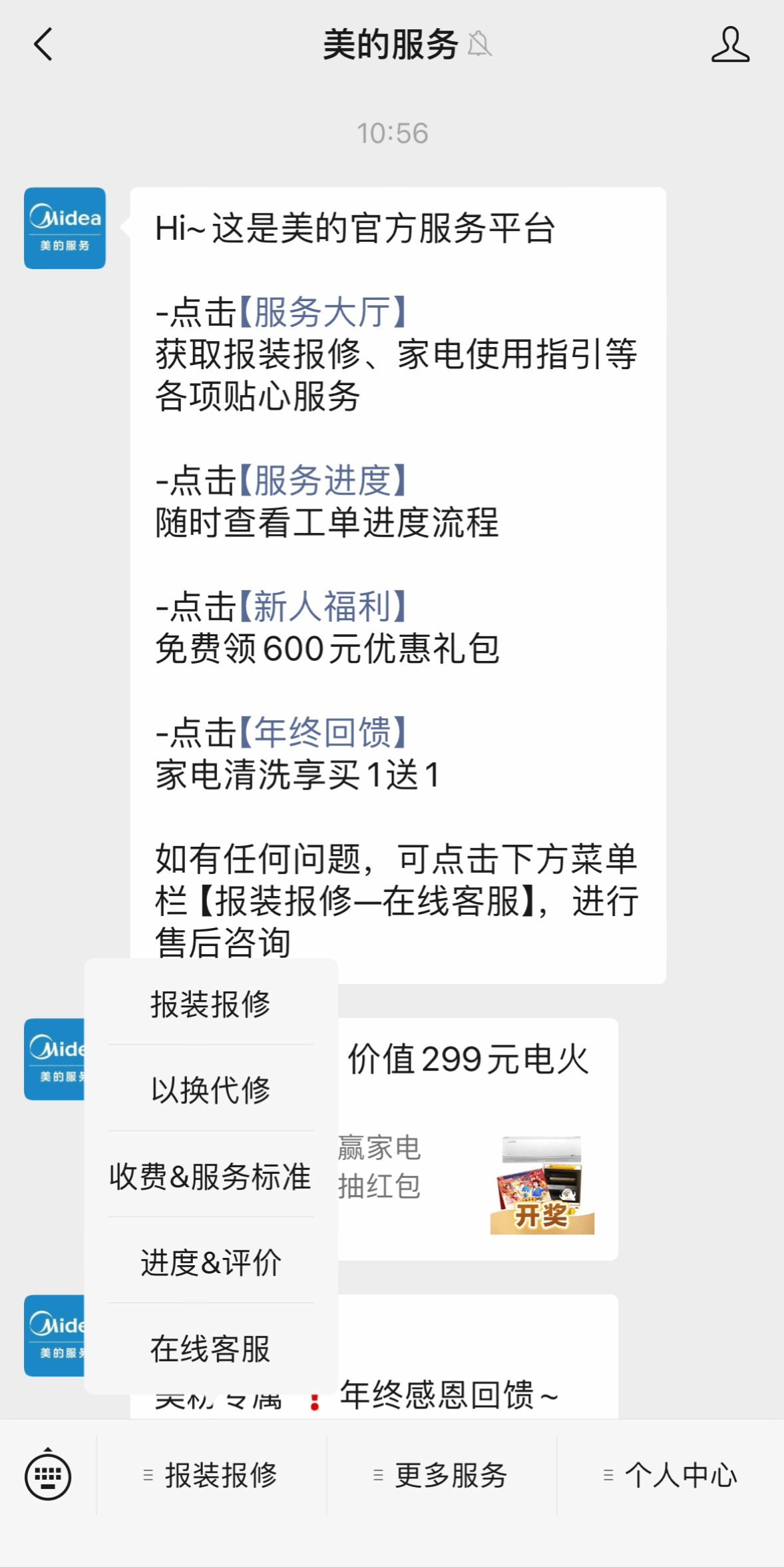 一、微信搜索关注“美的服务”公众号