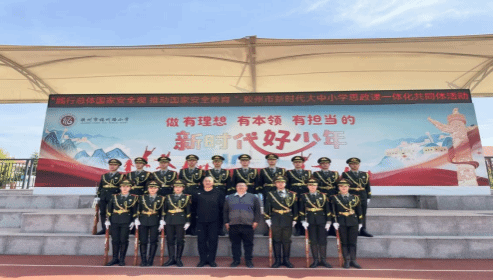 为深入推进大中小学思想政治教育一体化建设,强化青少年爱国主义思想,践行总体国家安全观,加强国家安全教育,4月17日早上10点整,筑梦青工红旗连到胶州市福州路小学开展“践行总体国家安全观 推动国家安全教育”主题团日活动,由筑梦青工红旗连国旗仪仗队举行升旗仪式。