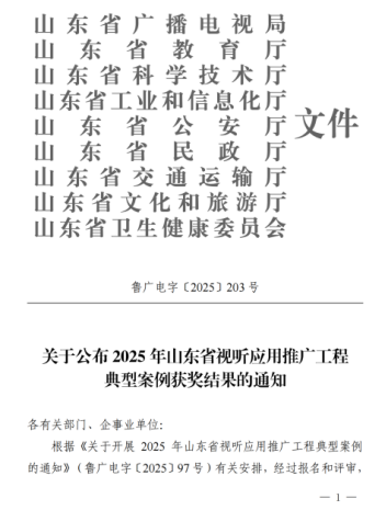 近日,由山东省广播电视局、山东省教育厅、山东省科学技术厅等多部门联合组织的2025年山东省视听应用推广工程典型案例评选结果正式通知,学校设计艺术与传媒学院申报的《上合虚拟仿真数字文化创新实验中心》荣获“视听+教育培训”领域二等奖。