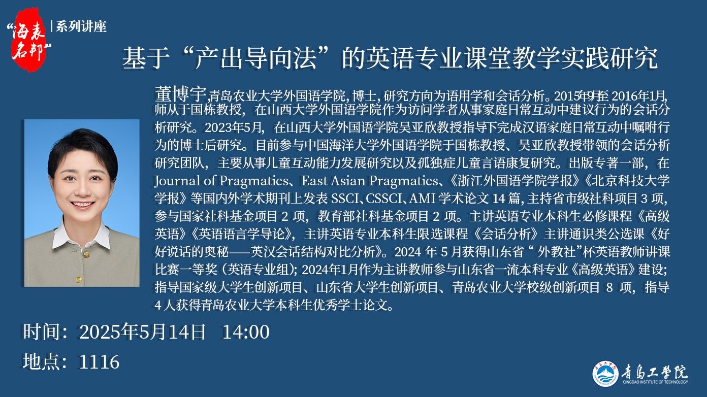 “海表名邦”系列讲座:董博宇《基于“产出导向法”的英...